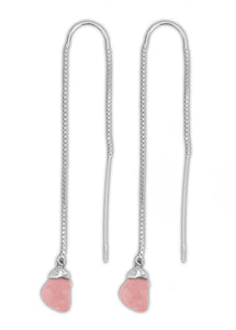 Pair of Sterling Silver Threader Raw Crystal Earrings - Pink Opal